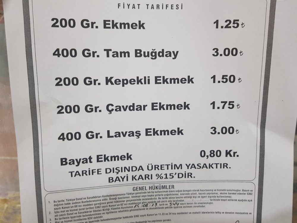 Tüm ekmek çeşitlerinde yeni fiyatlar şu şekilde.