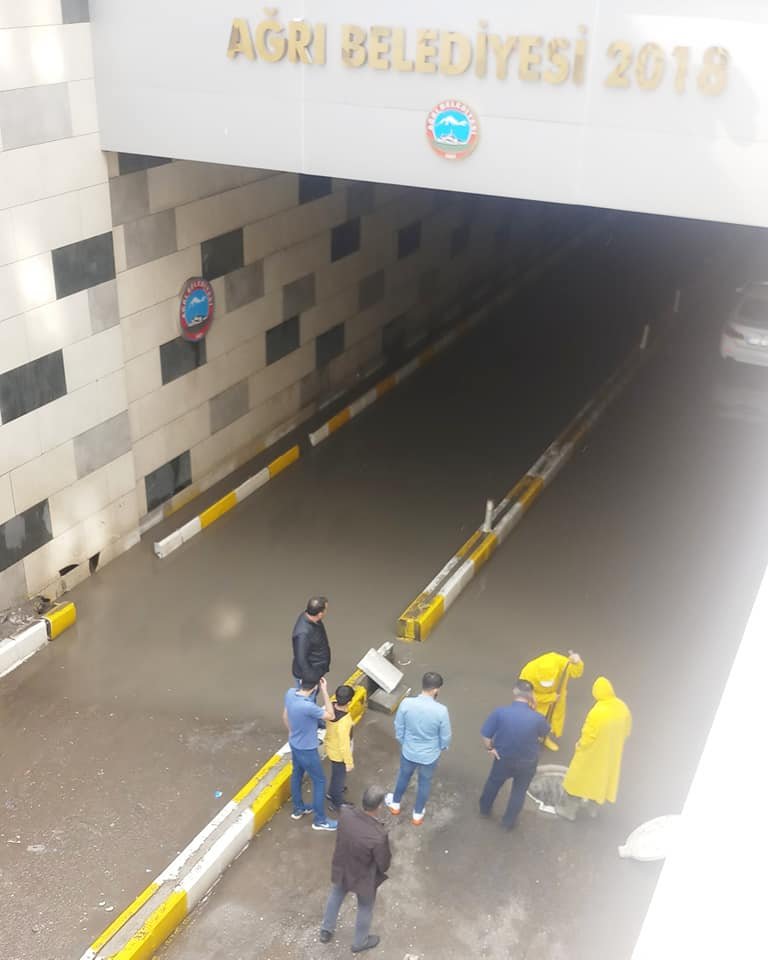 Ağrı merkez Dörtyol kavşağında battı çıktıyı su bastı.