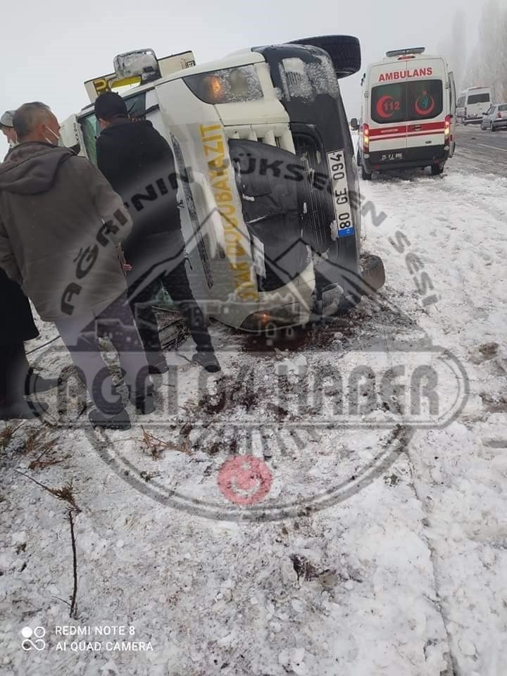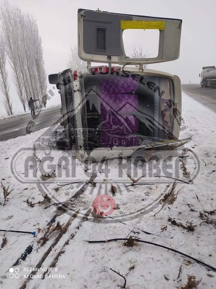 Ağrı'dan Erzurum'a yolcu götüren minibüs kaza yaptı 11 kişi yaralandı.