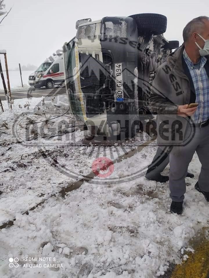 Bölgeyi etkisi altına alan kar yağışı nedeni ile yaşanan kazada 11 kişinin yaralandı.Kimlik bilgilerine erişilemeyen yaralılar 112 sağlık ekiplerince çeşitli hastanelere götürülerek tedavi altına alındı.Yralıların sağlık durumlarının iyi olduğu öğrenildi.