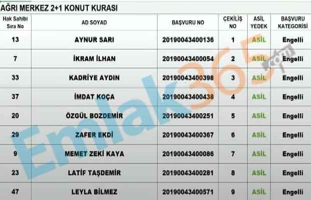 TOKİ Ağrı 300 Konut Projesinin kura çekimi yapıldı. Bugün saat 13:00 da başlayan kura çekiminde 250 hak sahibi belli oldu. 3+1 konutların hak sahibi listesi; 74- Resime Çelik 75- Cebrail Çelik