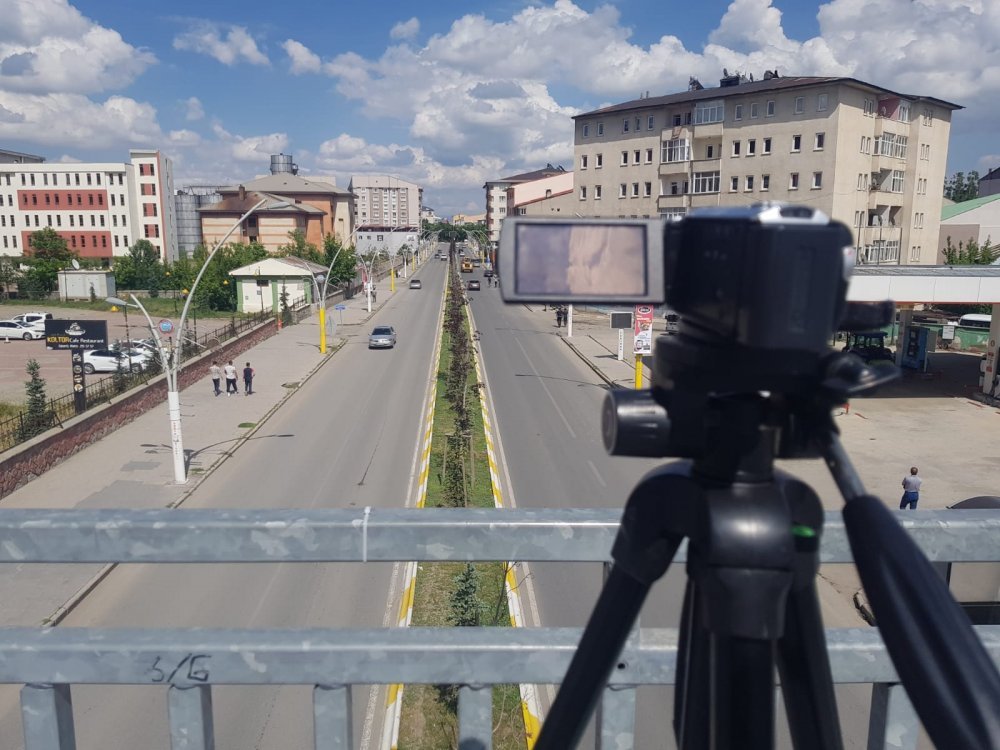 Ağrı Alparslan Orta Okulu önündeki üst geçide kurulan iki kamera sürücülere zor anlar yaşattı.