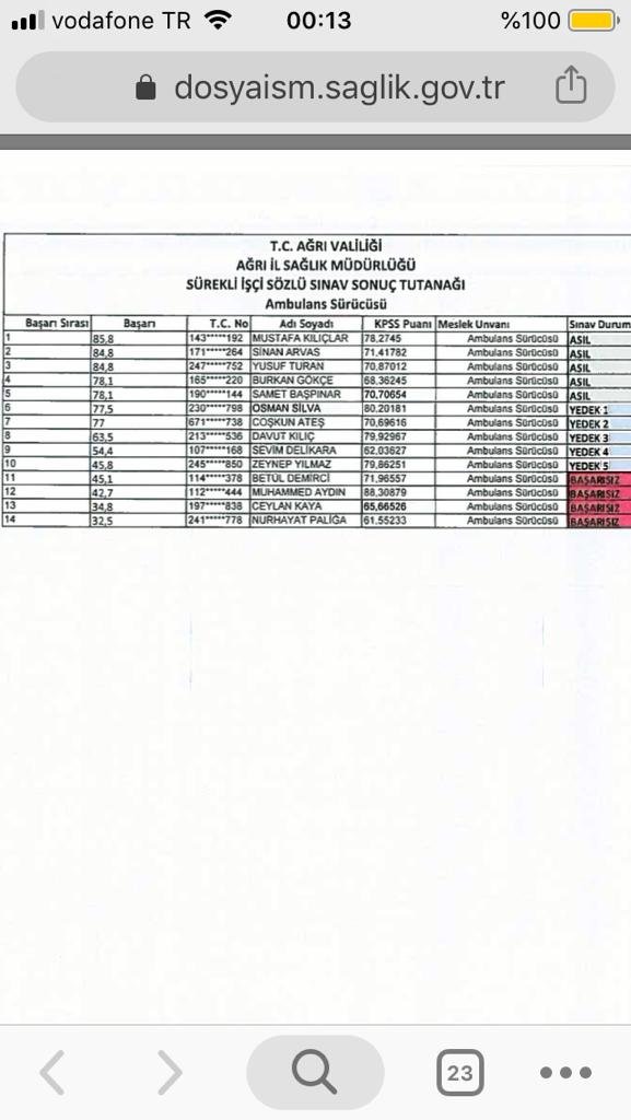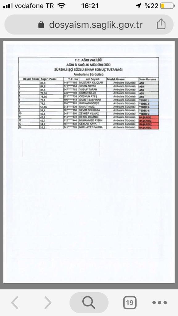 Ağrı İl Sağlık Müdürlüğü tarafından sürekli işçi sözlü sınavı için Ocak ayında ilana çıkıldı. Şubat ayında başvuru yapanlar direksiyon sınavına tabi tutuldu.Yapılan sözlü sınav sonrası asılan liste 1 ay sonra değiştirilerek kazandığı ilan edilen 2 kişi elendi.