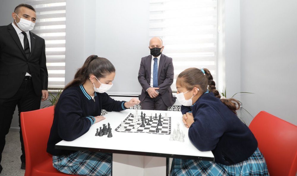 Kütüphanenin öğrenci ve öğretmenlerimize hayırlı olması temennisinde bulunan Vali Varol, öğrencilerimizle kurdele keserek kütüphanenin açılışını gerçekleştirdi. Açılışın ardından kütüphanede incelemelerde bulunarak öğrencilerimizle kitaplar hakkında sohbet eden Vali Varol, evlatlarımızın gözündeki ışığın, kendilerine güç verdiğini belirtti. Kütüphanede akıl ve zeka oyunu oynayan çocuklarımıza oyunlarında eşlik eden Vali Dr. Osman Varol, öğrencilerimizin davetini geri çevirmeyerek onlarla oyun oynadı. Kütüphane içerisinde bulunan alanda kodlama eğitim alan evlatlarımızla bir süre sohbet eden Vali Varol; kendine güvenen, gelişime açık ve öğrenme arzusu olan evlatlarımızın eğitim gördükleri okulların çağımızın gelişimine ayak uyduran teknolojik ve teknik altyapıya sahip olduğunu vurguladı.