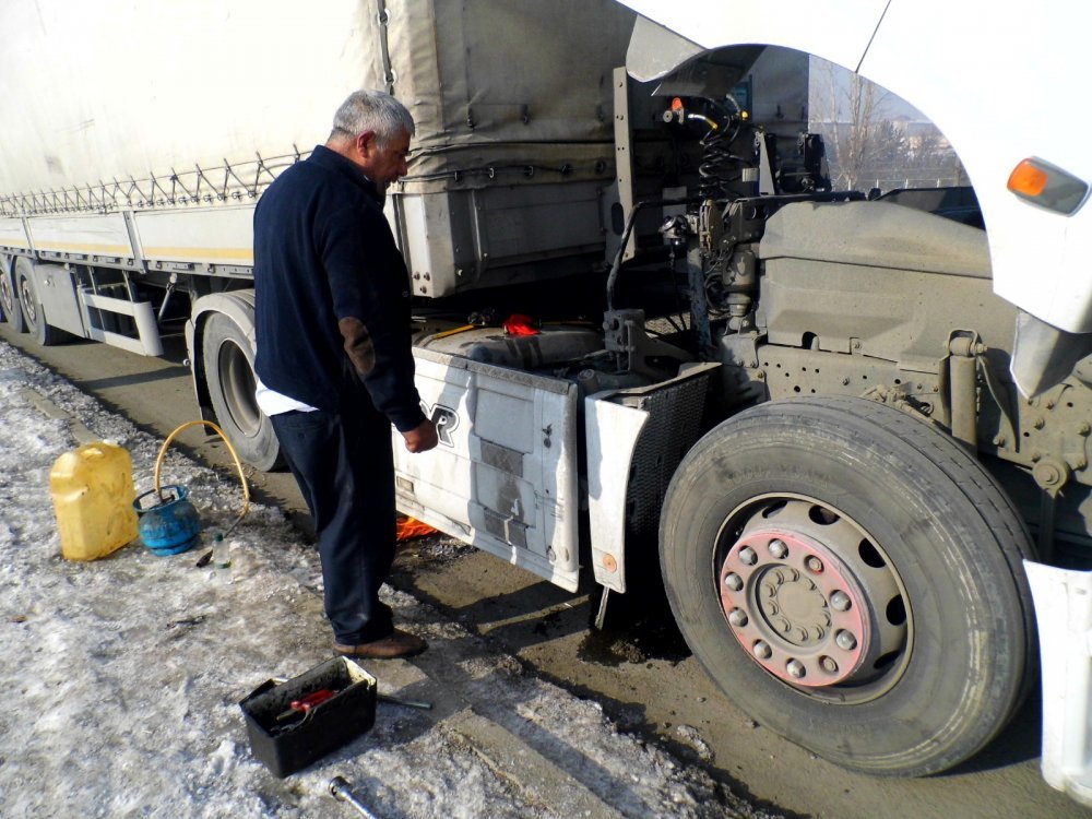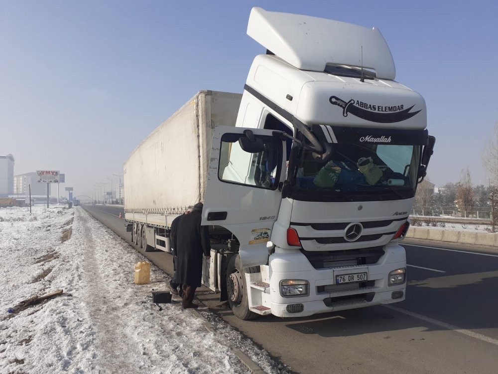Ağrı –İran uluslar arası yolda Ağrı’nın hemen girişinde donan tır mazot deposunun altında yakılan ateş,filtreler ve yakıt sisteminin temizlenmesi ile 6 saat sonra çalışarak yoluna devam edebildi.