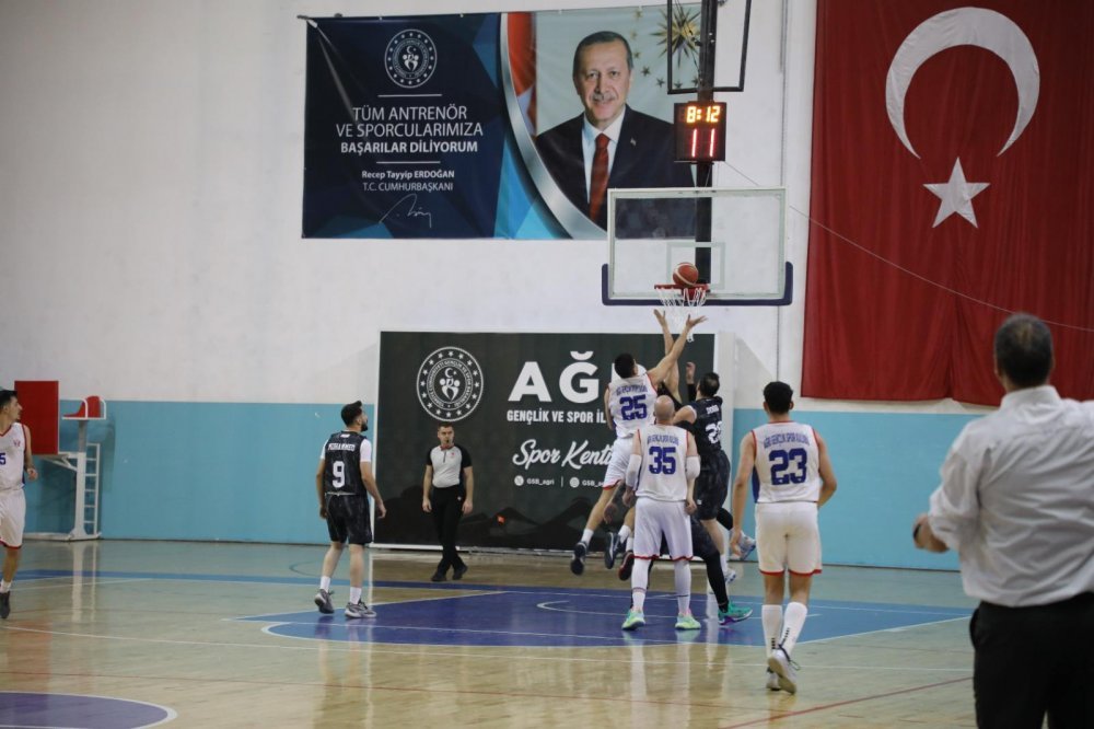 Ağrı Merkez Spor Salonunda oynanan karşılaşmayı basketbol severler heyecanla takip etti.