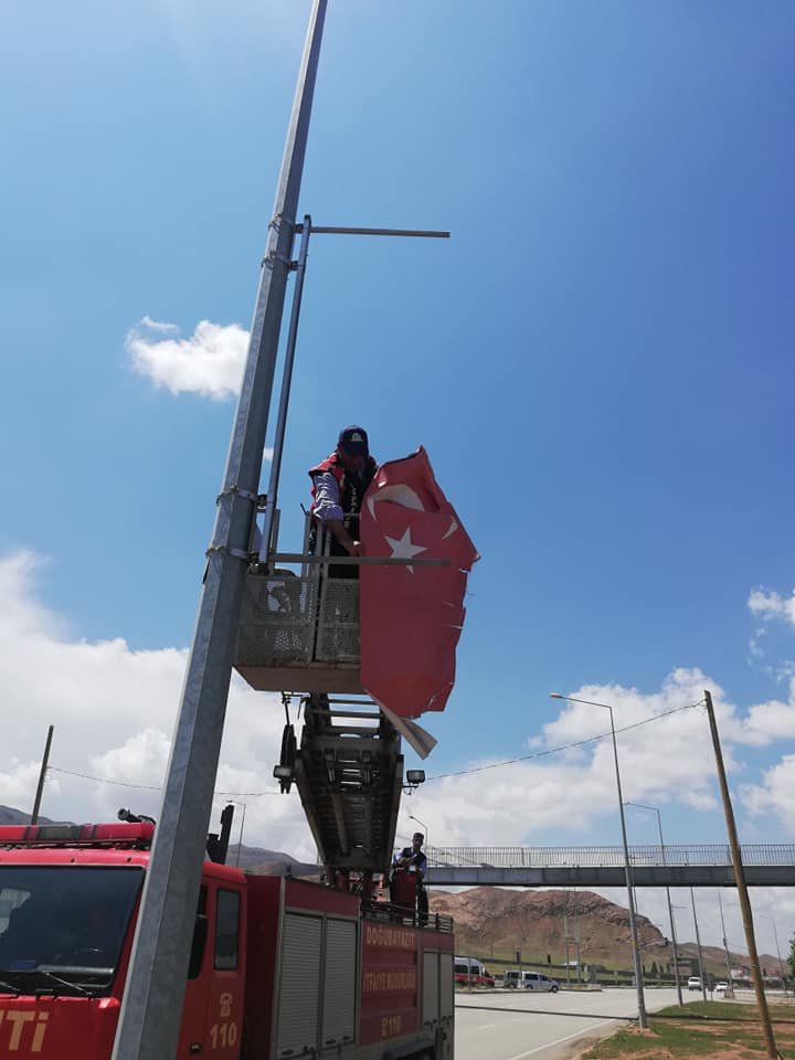 Doğubayazıt Belediye Başkanı Yıldız Acar’ın talimatı ile Türk Bayraklarının değiştirilmesi vatandaşlar takdirle karşılandı.