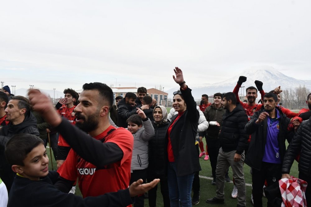 Gol sonrası protokol tribününe koşarak Başkan Yıldız Acar’a sevgi gösterisinde bulunan futbolcular maç sonrası şampiyonluk yolunda güçlü rakiplerinden Ağrı Vefa Spor’u yenmenin sevincini de Doğubayazıt Beşlediye Başkanı Acar’la birlikte kutlayarak seyirciye gittiler.