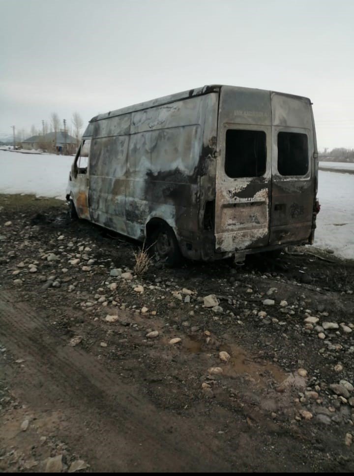 Her zamanki gibi aracını parkeden İsmail Güngör’ün kullandığı Ağmar’a ait kamyonet ve Abbas Güngör’e ait minibüs gece yarısı kundaklandı.