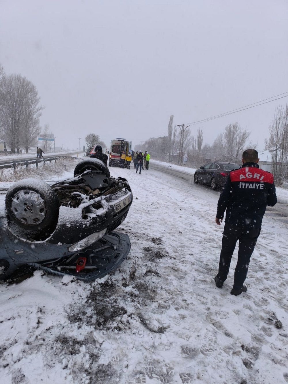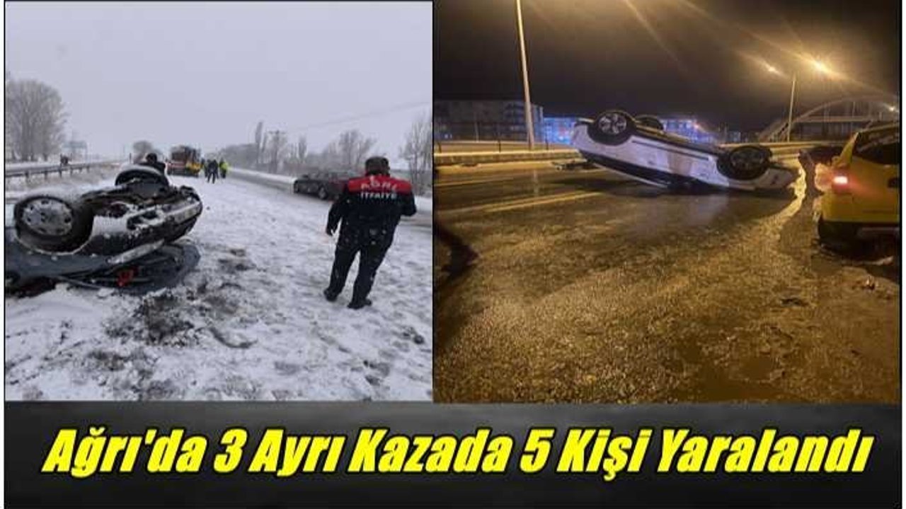 Ağrı’da yaklaşık 24 saattir aralıksız devam eden kar yağışı nedeni ile kayganlaşan yollarda direksiyon hakimiyetini kaybeden sürücülerin karıştığı kazada 5 kişi yaralandı.
