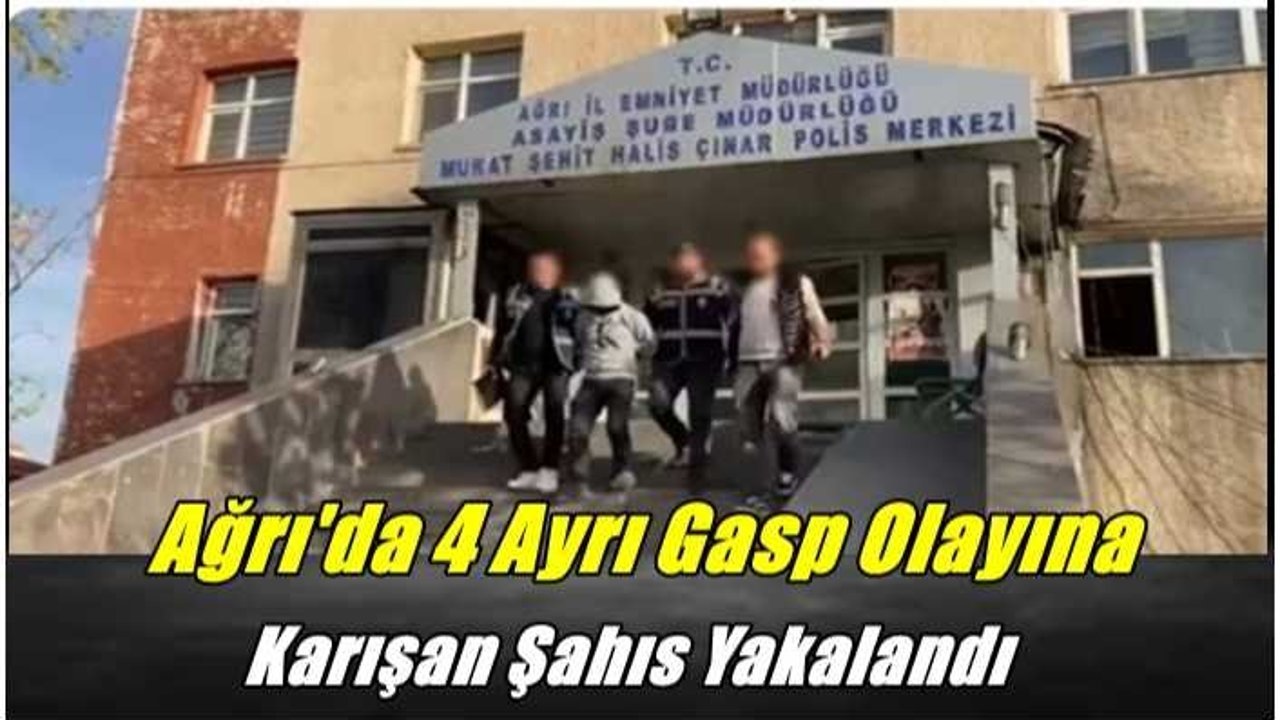 Ağrı İl Emniyet Müdürlüğü Ağrı Merkez'de farklı tarihlerde gerçekleşen gasp olaylarının şüphelisinini yakaladığını sosyal medya hesabından yaptığı açıklama ile duyurdu.