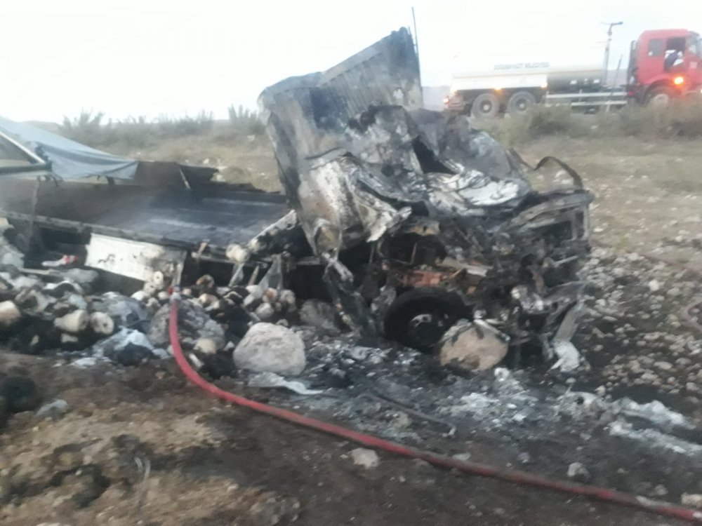 Doğubayazıt -Gürbulak yolu Topçatan Köyü mevkisinde önceki gece yanmaya başlayan iplik yüklü tır için Doğubayazıt Belediyesi İtfaiye müdürlüğüne ihbarda bulunuldu.