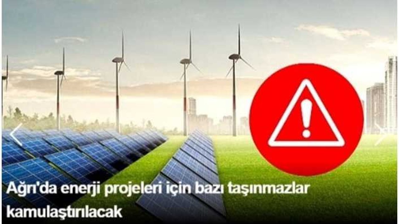 Ağrı'da TEİAŞ Genel Müdürlüğüne ait "154 kV Yakaağzı RESİpektepe RES TM Enerji İletim Hattı Projesi" kapsamında gösterilen bazı taşınmazlar da acele istimlak edilecek.