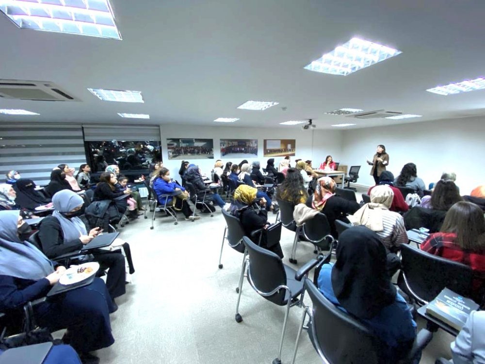 Ağrı da Hanımeli Açıyor Projesi çerçevesinde bir araya gelen kadınlar Avukat Berfin Çeçen Şenol'un sunumu ile gündelik hayatta hukuksal haklarına yönelik bilgilendirildiler.