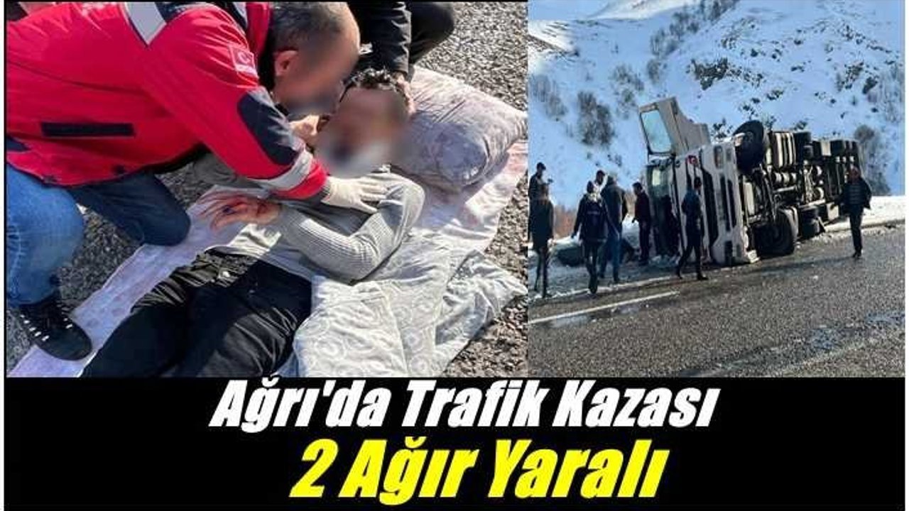 Ağrı yolunda kaza yapan tırda bulunan iki kişi ağır yaralandı.