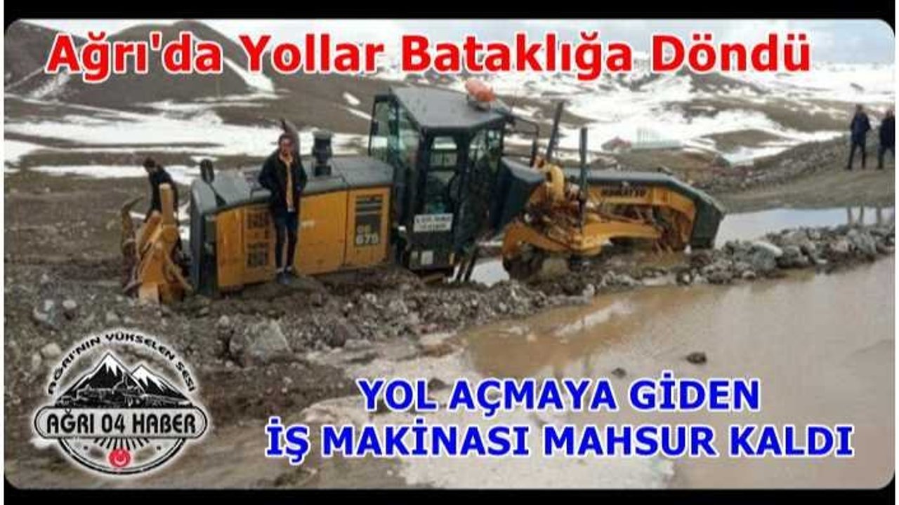 Yağan kar ve yağmur suları nedeni ile yolu kapanan köylülerin başvurusu üzerine bölgeye sevk edilen iş makinası açmak için gittiği köy yolunda batarak mahsur kaldı.