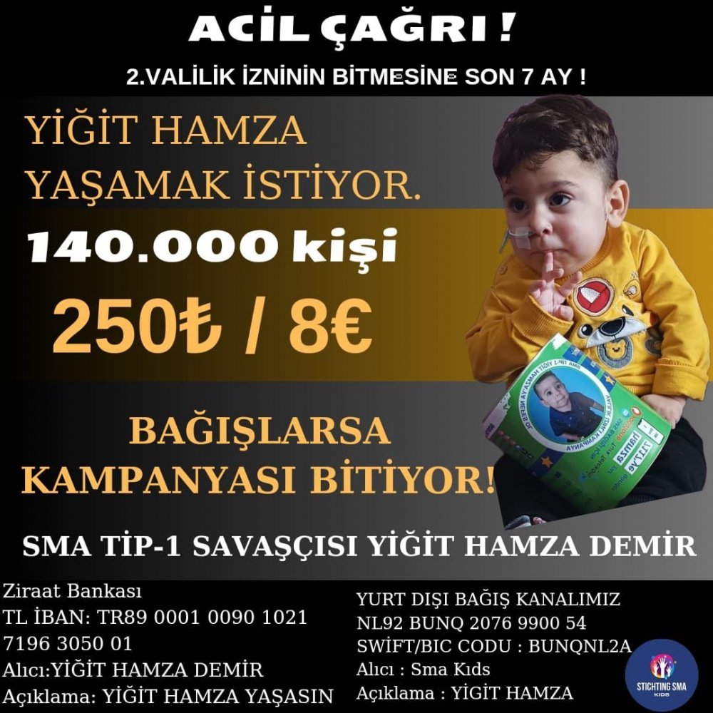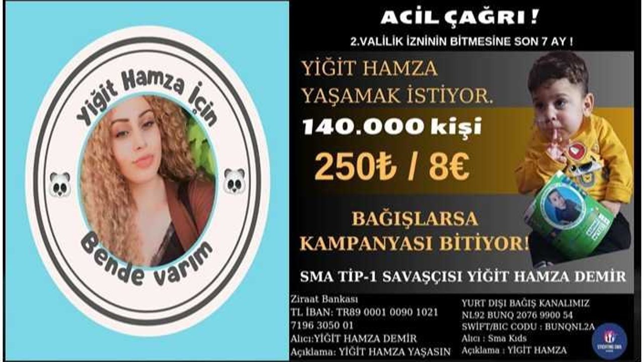 Sma hastalığına yakalanan küçük Yiğit Hamza için seferberlik başladı. Ailesi, onun sağlığına kavuşabilmesi için 140.000 bin kişiden 250 TL'lik bağış toplamayı hedefliyor. Toplanan bağışlar, tedavi sürecine destek olacak ve umut dolu bir geleceğe ulaşmalarını sağlayacak.