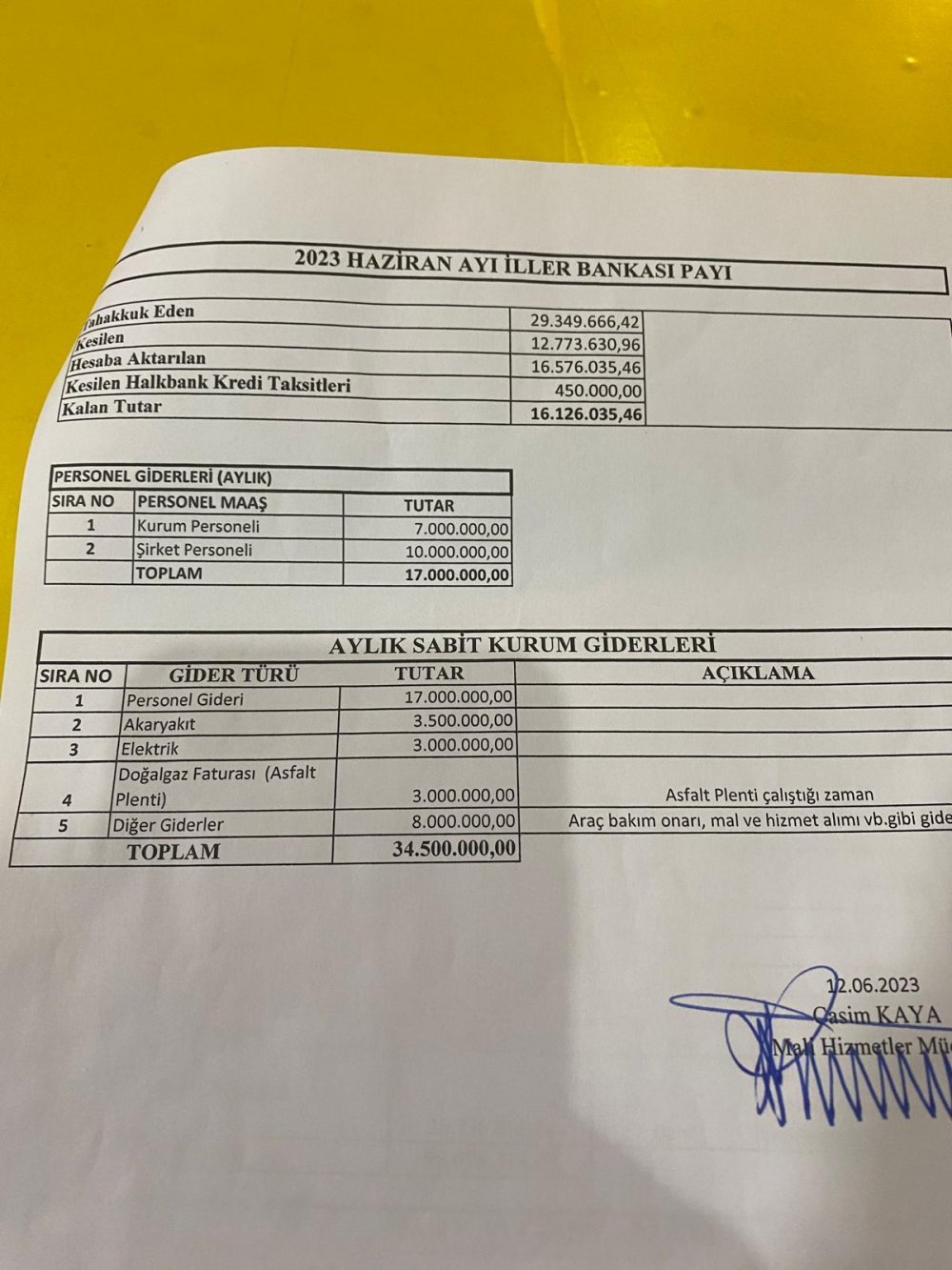 Metin Karadoğan Dönemine ait devir teslimde açıklanan borç listesi