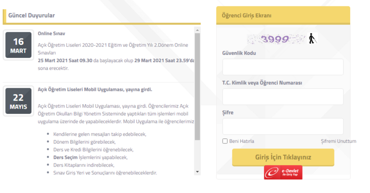 Açık Öğretim Liseleri 2020-2021 eğitim ve öğretim yılı 2.dönem online sınavları 25 Mart 2021 saat 09.30 da başlayacak olup 29 Mart 2021 Saat 23.59’da sona erecek.
