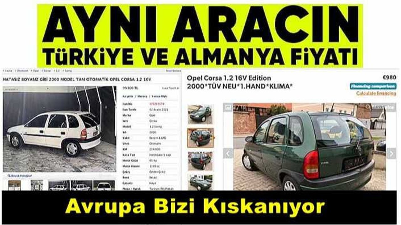 Ancak aynı aracın muadili olan yani birebir özellikleri aynı olan Almanya'daki aracın fiyatı ise görenleri hayrete düşürdü.Çünkü Almanya'da satılan 2000 model 1.2 16V Opel marka aracın fiyatı sadece 980 Euro idi.Yani Türkiye'deki Euro/TL kuru ile yaklaşık 15 bin TL.