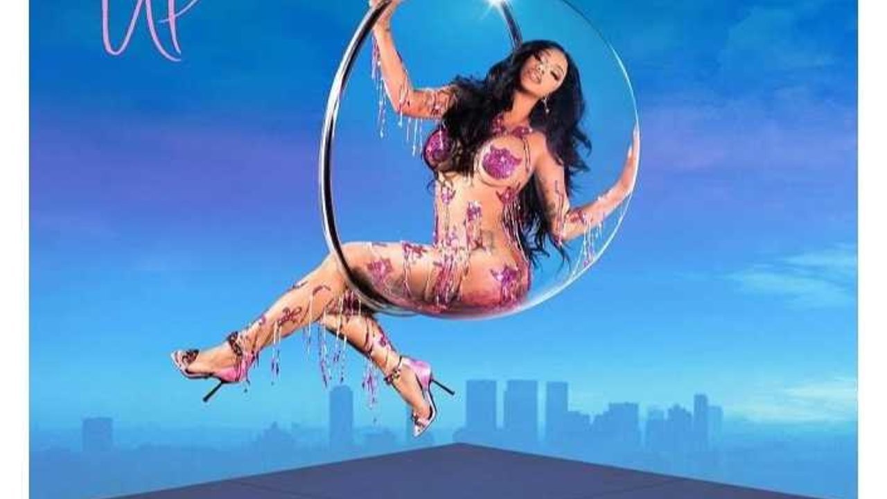 Üstünde sadece streç film olan ünlü rapçi hayranlarına Twitter'dan yaptığı açıklamada , "Yeni single'ım Up, cuma günü çıkıyor" paylaşımı yapmış ve sevnç gösterileri ile karşılanmıştı.