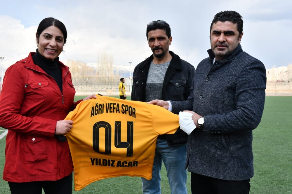 Ağrı Vefa Spor Kulüp Başkanı Yusuf Kalkan ve Başkan Acar için hazırladıkları formayı takdim ederek jest yaptı.