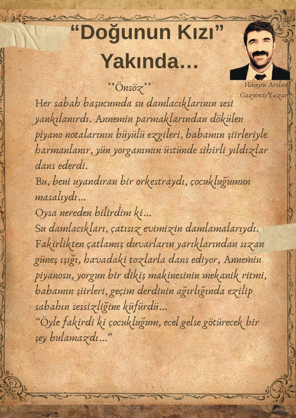 Gazeteci ve yazar Hüseyin Arslan’ın kaleme aldığı *Doğunun Kızı*, dram ve yaşam mücadelesi türünde, okurları Doğu Anadolu’nun yoksul bir köyünden batının bilinmez dünyasına uzanan dokunaklı bir yolculuğa çıkarıyor.
