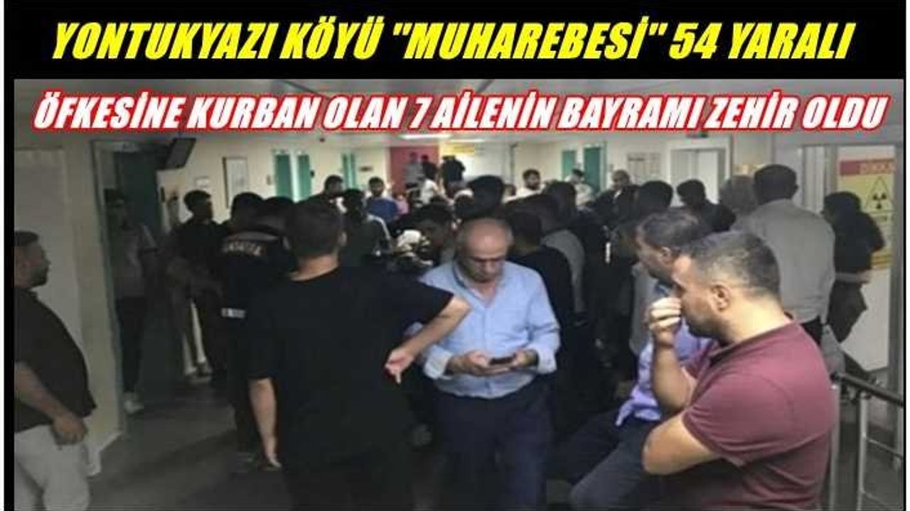 Geniş güvenlik önlemlerinin alındığı köyde 7 ailenin birbirine girdiği kavgada 2'si ateşli silahla, 1'i kesici aletle, diğerleri sopa, taş ve yumrukla olmak üzere 5'i ağır, toplam 54 kişi yaralandı.