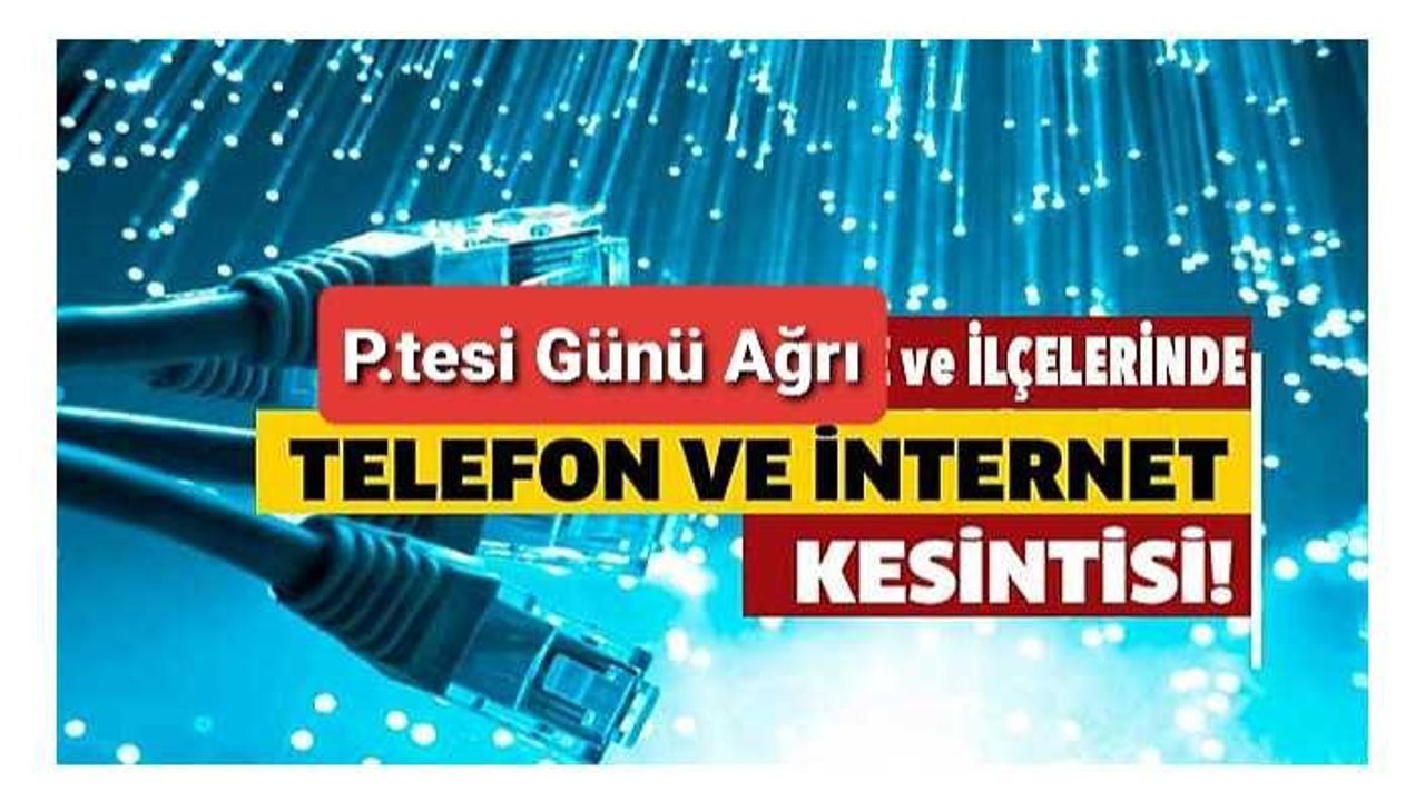 Türk Telekom intwrnet sayfasından çalışmalar nedeni ile içinde Ağrı'nın da olduğu 4 ilde yeraltı çalışmaları nedeni ile İnternet ve telefon hizmetlerini veremeyeceğini duyurdu.