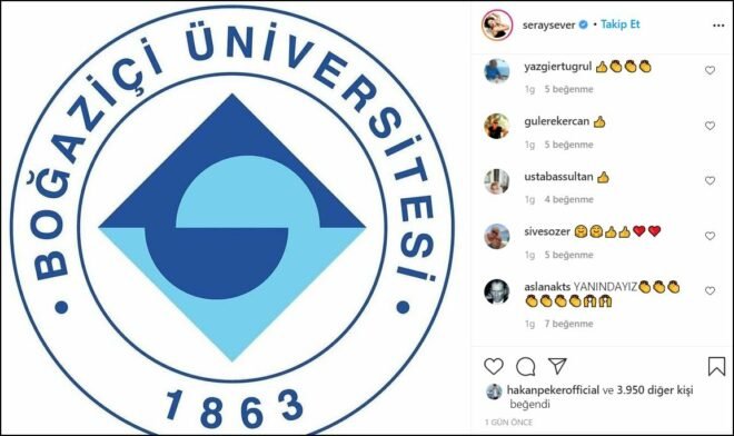 Seray Sever İnstagram hesabında Boğaziçi Üniversitesi logosu paylaştı Seray Sever paylaşımına “Ben bir Boğaziçiliyim” notunu ekledi.