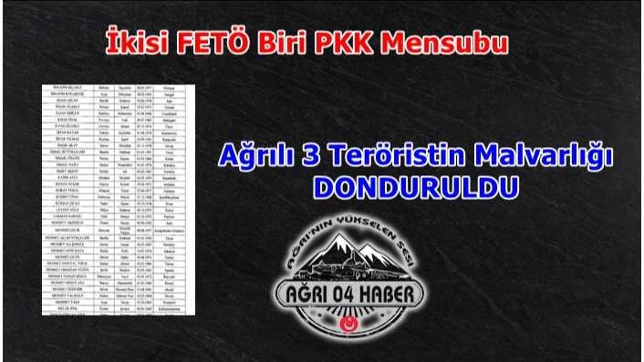 Bakanlığın yayımladığı genelge ile malvarlığı dondurulan 377 isim arasında 3 ağrılı yer aldı.