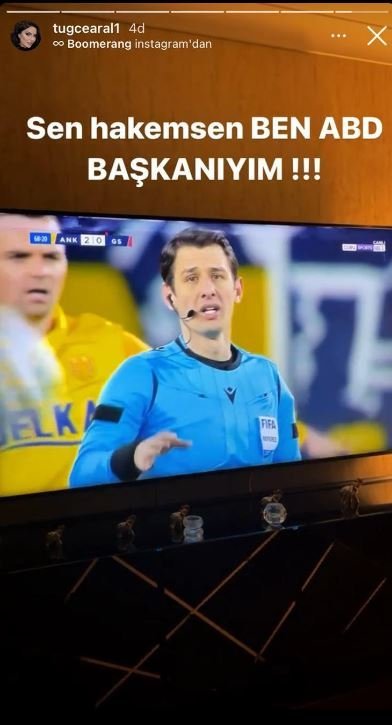 Aral paylaşımında hakem melerin fotoğrafını paylaşarak ''sen hakemsen bende ABD BAŞKANIYIM ''notunu düştü.