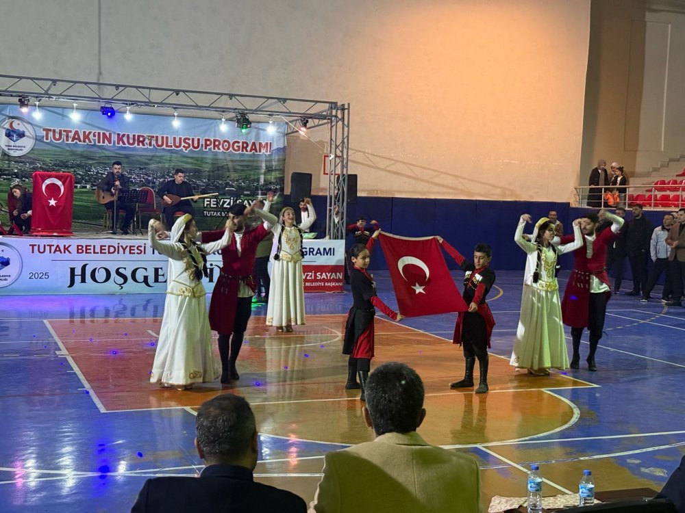 Tutak ilçesi, düşman işgalinden kurtuluşunun 107’nci yıl dönümünü görkemli bir programla kutladı. Soğuk hava ve yağış nedeniyle kapalı spor salonunda yapılan programa yoğun katılım olurken, salon adeta bayram yerine döndü.