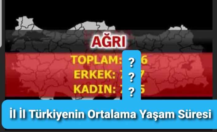 Yaşam süresinin en uzun olduğu iller sıralamasında sondan 3. Sırada ise Ağrının olduğu görüldü.